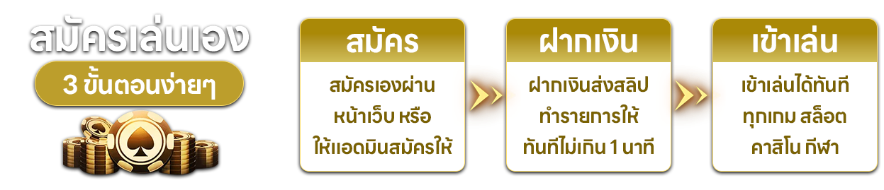 ตอบ : - สมัครผ่านหน้าเว็บไซต์หลัก กรอกข้อมูลส่วนตัว เบอร์โทรศัพท์ และบัญชีธนาคาร รอรับ username/password ผ่าน SMS ใช้เวลาไม่เกิน 3 นาที